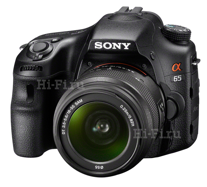 Модель SLT-A65 имеет уже пластиковый корпус, чуть меньшую скорострельность (10 кадров с секунду), 15 точек автофокуса вместо 19 у SLT-A77. Кроме того, у 65-й нет второго дисплея на верхней панели и кое-каких режимов съемки и настроек. Зато цена - порядка 35 000 рублей (за тушку) против полсотни тысяч за SLT-A77.