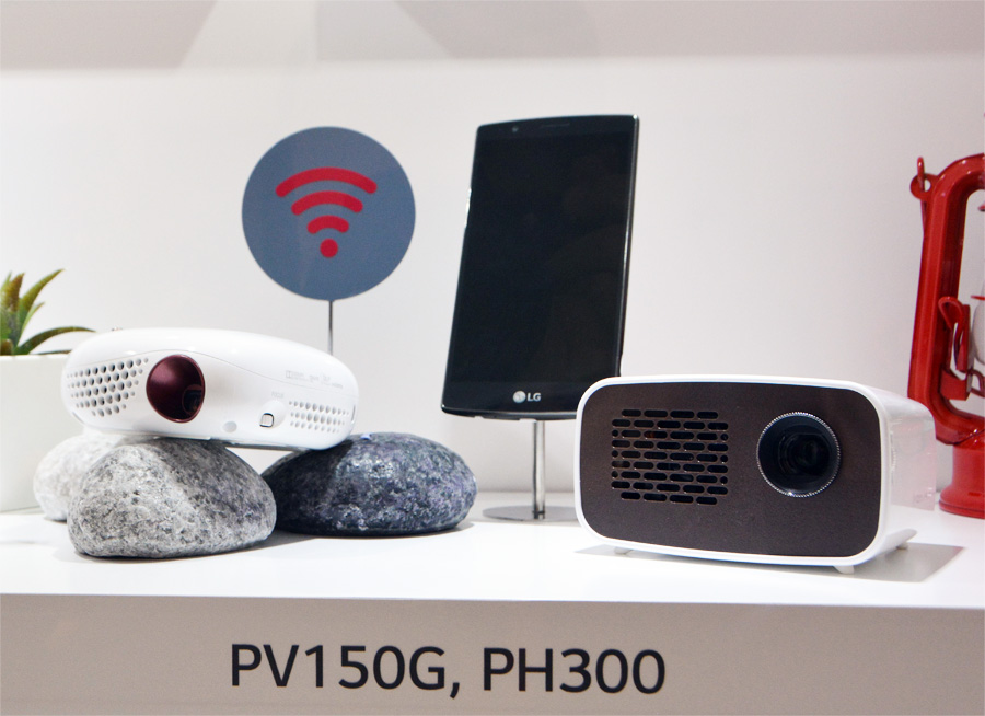Например, она представила карманный проектор PV150G для показа видео со смартфонов и планшетов, подключаться к которым он может без использования кабелей по протоколам WiDi и Miracast. Яркость у нег совсем небольшая – 100 лм, а разрешение не дотягивает даже до HD – 854 х 480 пикселей. Зато он может работать вообще без доступа к электрической розетке – у него есть встроенная батарея, которой хватает на 2 часа работы. Модель подороже – LG PH300 уже может похвастать разрешением HD Ready 1280 х 720 и яркостью в 300 лм, но подключается к источникам только через HDMI-кабель. Правда, источником для него может быть и смартфон – проектор поддерживает протокол MHL. Кроме того, он снабжен еще и цифровым ТВ-тюнером. И при всем этом он тоже может работать от собственных батарей до 2,5 часов. Зачем, спросите вы? Да чтобы взять кино и игры с собой даже на пикник у озера.