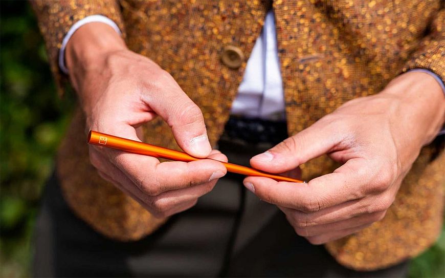 Вроде бы обычная ручка, но секрет в том, что ей не требуются стержни с чернилами – кончик девайса никогда не пачкается и не засыхает. Всё дело в наконечнике из сплава Ethergraph, который окисляется при соприкосновении с бумагой и оставляет заметный след, похожий на карандашный – однако, по стойкости равный рисунку обычной авторучки. Расход сплава при «работе» с бумагой чрезвычайно низок, так что Napkin Pininfarina Forever Prima прослужит долгие годы.