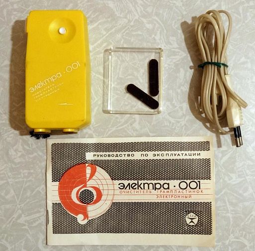 Полезное устройство для меломанов - электронный очиститель грампластинок - выпускалось с 1990 года Рязанским радиозаводом. С его помощью можно было удалить пыль и снять статический заряд с виниловых пластинок. Работает прибор от сети 220 В, потребляемая мощность не превышает 0,5 Вт. Время очистки одной стороны пластинки не превышает двадцати секунд. Габариты гаджета были 110 х 60 х 45 мм, масса – 250 граммов. Цена составляла 11 рублей.