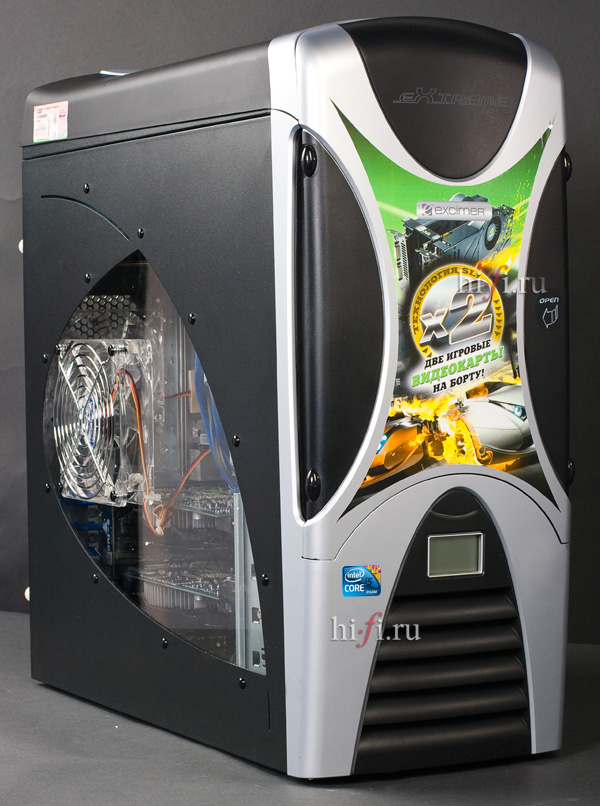 Сердцем машины является Intel Core i5-760 Lynnfield. Это чрезвычайно прогрессивный процессор форм-фактора LGA1156, примечательный интегрированным контроллером памяти, 8 (!) мегабайтами кэш-памяти третьего уровня и, главное, четырьмя физическими ядрами, работающими на частоте 2,8 ГГц (в моменты, когда необходима запредельная производительность, автоматика может кратковременно увеличить тактовую частоту до 3,2 ГГц). В свою очередь, технология Intel® Hyper-Threading превращает четыре физических ядра в восемь виртуальных - потоки вычислений распараллеливаются, позволяя переваривать огромные объемы данных. Еще каких-то три года назад сложно было представить себе, что процессор уровня Intel Core i5-760 Lynnfield вообще может появиться в домашней персоналке, а год назад никто не мечтал, что столь мощное «сердце» окажется в относительно доступной по цене машине. Но поскольку наш испытуемый ПК адресован в первую очередь геймерам, то впечатляющая мощь Intel Core i5-760 Lynnfield придётся как нельзя кстати. Полностью же прочувствовать всю прелесть современных игр поможет тандем из двух видеокарт Gigabyte GF GTS450 GDDR5. Каждая базируется на чипе NVIDIA GTS450 и оснащена гигабайтом собственной быстрой памяти типа GDDR5. Кулеры на корпусе (а это боковой 12 см и тыловой 9 см), произведенные компанией Jamicon, оснащены светодиодной подсветкой.