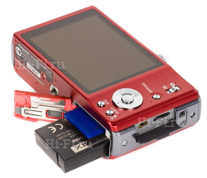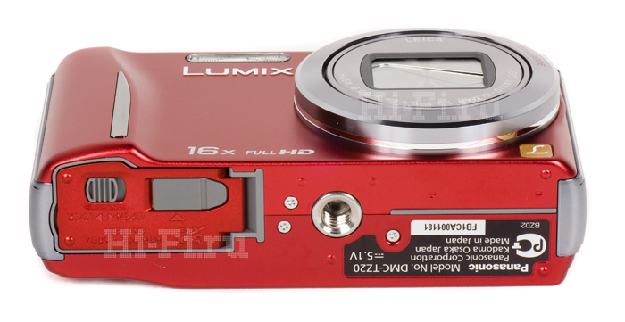 Все интерфейсные разъемы у TZ20 находятся сбоку, закрыты дверцей, а доступ к батарее и карте памяти осуществляется через нижний люк, рядом с которым располагается резьбовое крепление для башмака штатива. В очередной раз отмечу актуальную во многих случаях возможность штатно запитать аппарат не только от аккумулятора, но и от электросети, докупив опциональный адаптер.