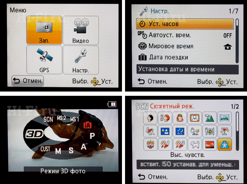 К разряду занятных можно отнести еще одну новомодную функцию – 3D-фото. Как не сложно догадаться, объемная картинка получается в данном случае при склейке двух последовательных кадров, снятых с небольшим горизонтальным смещением объектива. При таком раскладе говорить о съемке быстродвижущихся объектов не приходится. Зато предметной (в меньше степени пейзажной) фотографией в 3D с помощью TZ20 можно заниматься весьма плодотворно. Все, что требуется от фотографа – это перевести камеру в режим 3D, зажать кнопку спуска и перемещать камеру вбок на 10 см. Остальное электроника сделает сама. Готовые снимки можно посмотреть на 3D-телевизоре, подключив к нему TZ20 через HDMI опциональным кабелем.
