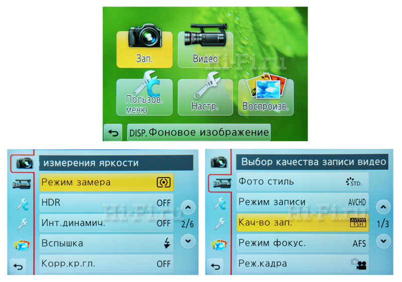 Возможности Panasonic G5 огромны, поэтому показывать в рамках одной статьи все страницы всех меню – а их у камеры несколько – на сенсорном экране едва ли нужно. Приведу лишь несколько наиболее показательных. В глазке видоискателя эти данные отображаются в таком же виде.