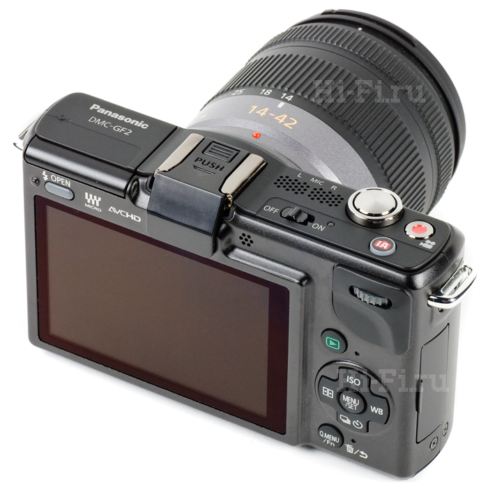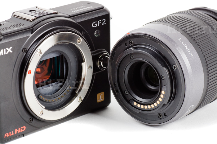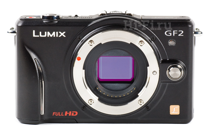 При этом GF2 тоже оснащается крупной матрицей Panasonic Live MOS 17,3 x 13 мм – но только разрешения 12,1 Мпикс против 16 у GH2.