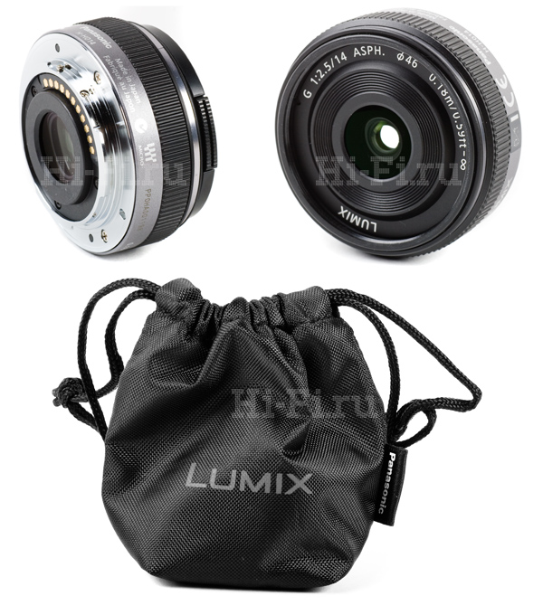 • Объектив комплекта GF2C: 14 мм (28 мм в эквиваленте формата 35 мм), F2,5, минимальная диафрагма F22, минимальная дистанция фокусировки 0,18 м, диаметр светофильтра 46 мм, байонет Микро 4/3;