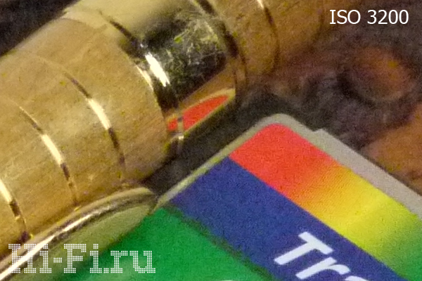 Тест на шумы я решил не пропускать, хотя результаты были известны заранее: электроника у GH2 и GF2 одинаковая, тип и размер матриц тоже, а разница в мегапикселях если и скажется на реальном результате, то незначительно. Описание теста: режим съемки в JPEG с приоритетом диафрагмы (ее значение установлено на 7.1), коррекция экспозиции +1/3, баланс белого ручной, встроенный в камеру подавитель шумов включен. Съемка производилась с объективом 14—42 мм на максимальном фокусном расстоянии, со штатива. Подсветка композиции – двумя лампами накаливания по 50 Вт. Обработка изображений не проводилась – лишь кадрирование, наложение подписи и повторное сохранение в JPEG с минимальной компрессией.