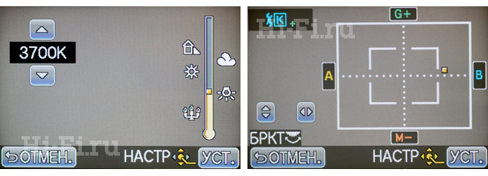 Полностью описывать функционал меню GF2 не считаю нужным, поскольку тут настраивается буквально всё, включая ограничение верхнего значения ISO для автоматического режиме съемки iA. Максимально оперативно камера позволяет подкорректировать значение экспозиции (кстати, это возможно даже при включении тотального «автопилота», что лично меня очень порадовало), выставить значение диафрагмы и выдержки вручную. С балансом белого вообще полная свобода: для его установки имеется аж четыре (!) способа. Первый – классический, выбор из предлагаемых предустановок, второй – ручной, по белому сэмплу в центральной части кадра, третий – плавно, в Кельвинах (от 2500K до 10000K с шагом 100K), перемещая ползунок по шкале с подсказками, четвертый – пальцем, катая указатель по виртуальному полю. Разумеется, все изменения тут же отражаются в реальном времени.
