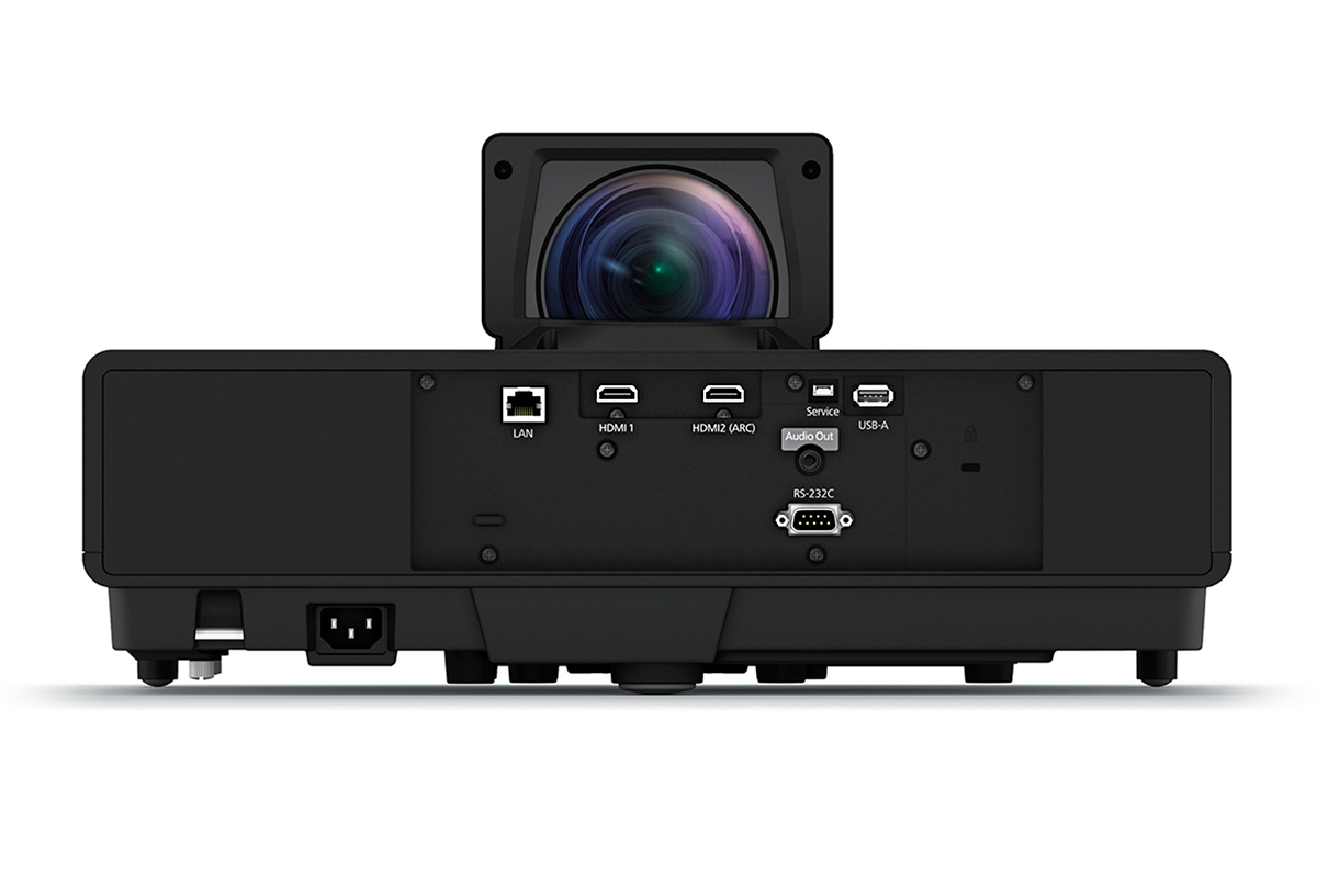 Весьма оригинальное устройство – за сверхкороткофокусные устройства раньше просили куда большую сумму. Epson EH-LS500B позволяет покрыть 100” экрана уже с 39 см удаления от стены, использует три LCD-матрицы, достигает разращения в 3 840 x 2 160 точек и использует Laser-LED источник света. ТТХ весьма эффектны (световой поток в 4 000 лм при контрастности 2 500 000 : 1), изображение очень живое и насыщенное.