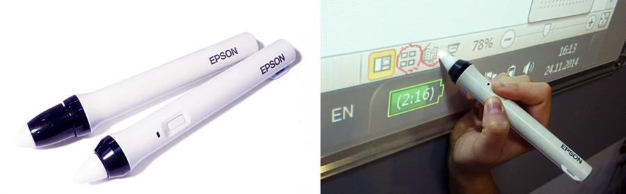 Как нетрудно догадаться, функция мыши позволяет использовать практически любое программное обеспечение, не отходя от экрана. Особенно – в сочетании с экранной клавиатурой. Однако с выходом новейших интерактивных проекторов Epson EB-595Wi и Epson EB-1430Wi появилась возможность взаимодействовать с изображениями пальцами! А если быть точным – проектор в состоянии отследить одновременно 2 маркера и до 6 пальцев рук!