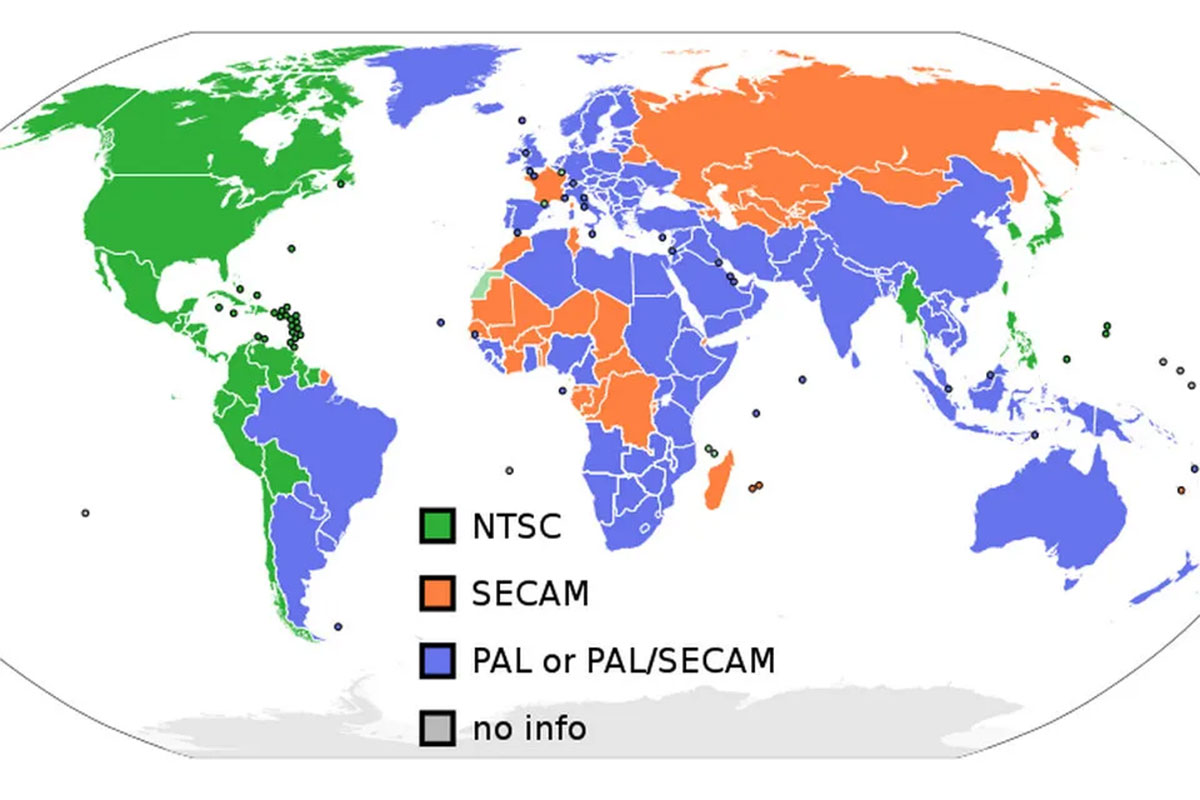 Как было отмечено выше, у истоков стандарта NTSC стояли США, система PAL была разработана в Западной Германии, а SECAM родился во Франции при участии советских специалистов. Это определило и распространение стандартов цветного телевизионного вещания в мире. SECAM, кроме Франции и СССР, был принят в бывших африканских колониях Франции и в странах СЭВ, включая Восточную Германию, PAL был выбран западно-европейскими странами и их бывшими колониями по всему миру. А учитывая, что среди этих стран были Великобритания и Испания – PAL оказался самой распространенной системой на планете. Стандарт NTSC обосновался в Северной Америке, Японии, которая в годы становления цветного телевещания была под сильным влиянием США, и ряде стран Южной Америки, расположенных в основном на западном побережье континента.