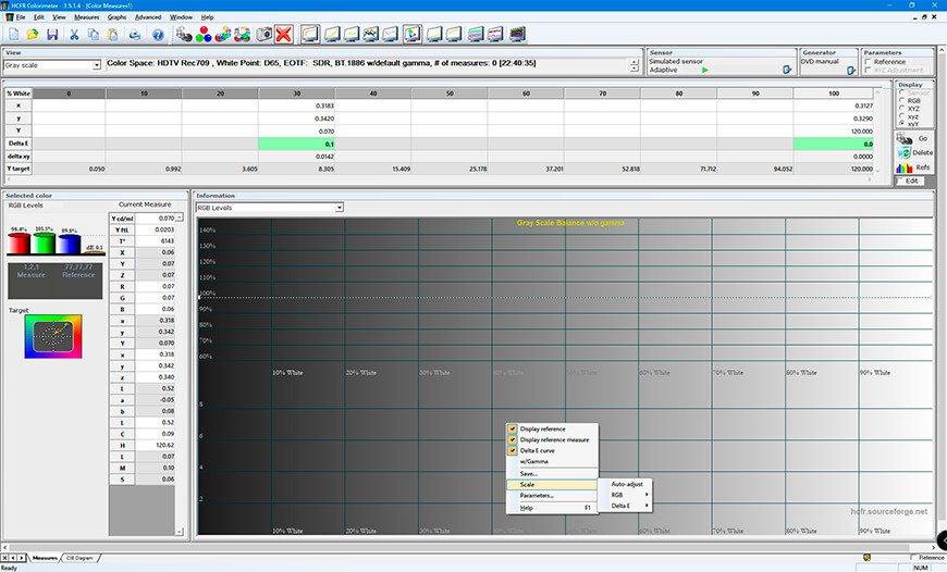 Мы будем калибровать оттенок и насыщенность шести важных цветов, а также точку белого при нескольких значениях яркости. Работать будем в цветовом пространстве Rec 709.