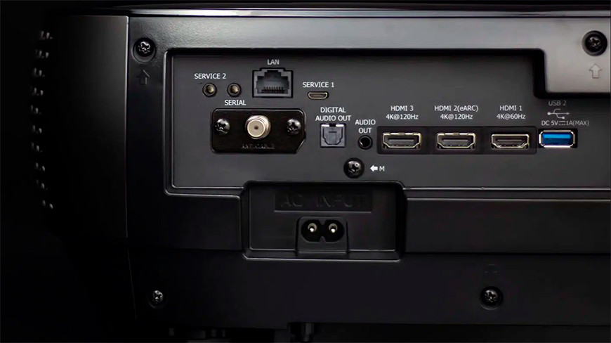 Что касается звукового сопровождения, то в проекторе есть встроенная акустическая система, которая способна принимать и воспроизводить поток в формате Dolby Atmos. Для просмотра телевизионных программ или новостных сюжетов ее способностей вполне хватает, а вот для полноценного погружения в просмотр кинофильмов понадобится внешняя аудиосистема, лучше всего – многоканальная. Чудес не бывает, и разместить в корпусе проектора акустическую систему, которая формировала бы звуковое поле, соответствующее по объему огромному изображению, еще никому не удавалось.