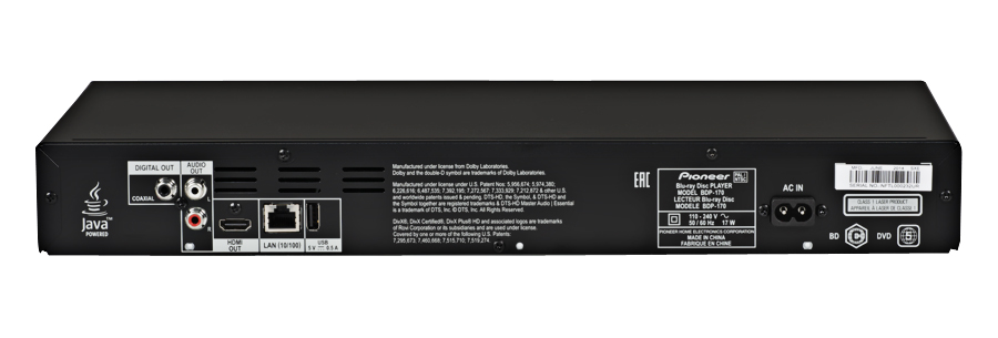 Главное достоинство Pioneer BDP-170 состоит скорее не в поддержке медиа как таковой, а в высоком качестве воспроизведения файлов и, конечно, дисков.