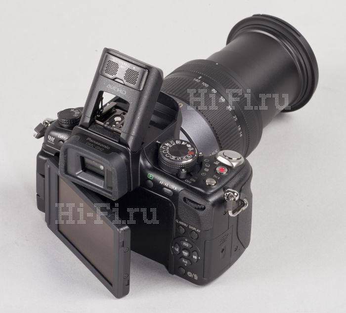 Фактически Panasonic DMC-GH2 конкурирует уже с зеркалками среднего уровня. Непосвященные почти наверняка за зеркальный фотоаппарат ее и примут: аналогичные габариты, типичный силуэт, большой прилив батарейного отсека с покрытием из мягкого пластика, солидного диаметра объективы. Только относительно малая глубина корпуса в районе байонета выдает отсутствие пентапризмы, и то если откинуть экран. Кстати, он здесь не просто откидной и сенсорный, но и поворачивающийся на 180 градусов, чего нет ни у одного беззеркального конкурента. Помимо дисплея для визирования есть тут, конечно же, и электронный видоискатель с разрешением 1,5 Мпикс. По размеру его экран превосходит оптический видоискатель зеркалок с матрицей APS-C и сравним лишь с тем, каким обладают профессиональные модели с полнокадровыми сенсорами. Пользоваться им чрезвычайно удобно во всех случаях, особенно вечером. Кроме того, на него может выводиться вся необходимая информация, как и на основной дисплей.