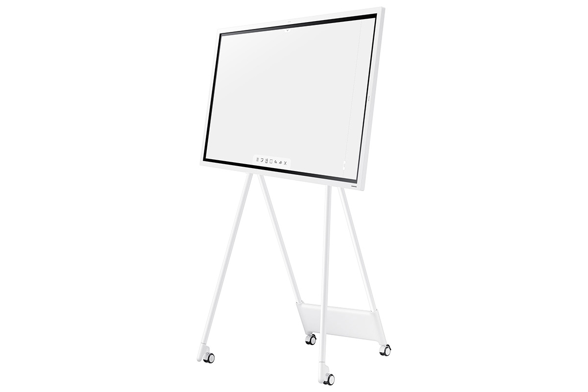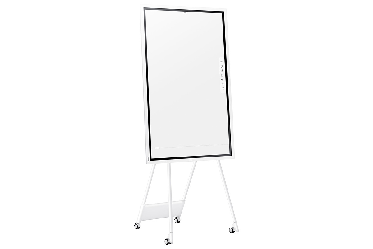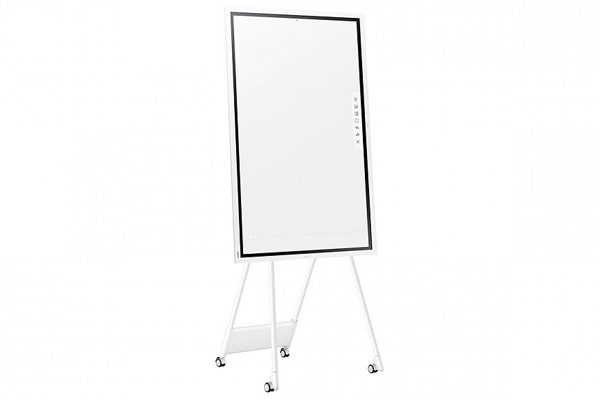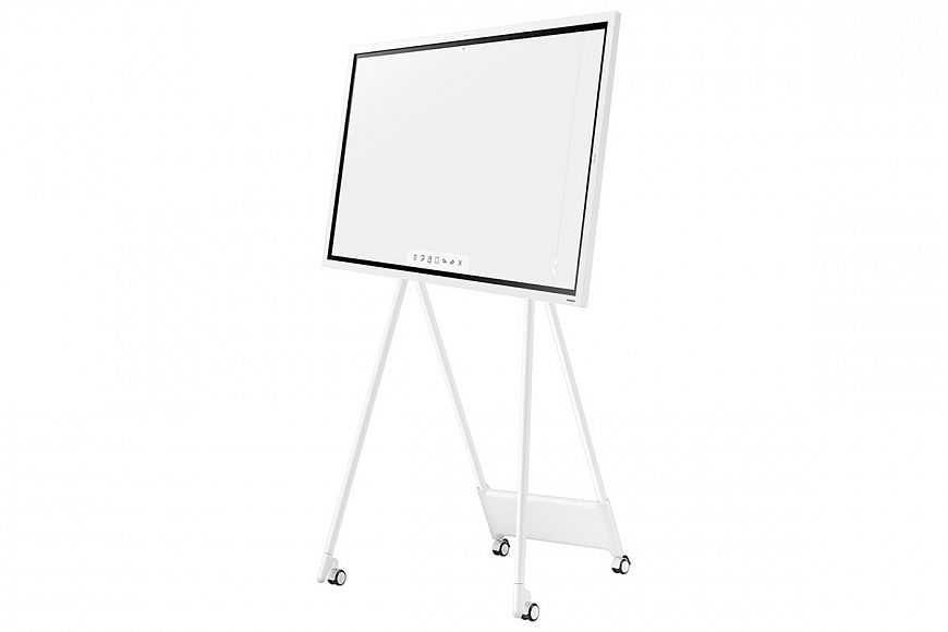 Тип – электронный флипчарт (интерактивный сенсорный дисплей со встроенным микро-компьютером) 55” | Название – Samsung Flip WM55R | Цена – 190 000 руб. | Дисплей – 16:9, диагональ 55”, разрешение 4K, отношение контраста 4 000 : 1, яркость 220 кд/м2, сенсорный (до 4 одновременных касаний), поверхность защищена закаленным стеклом | Режимы сенсорного ввода данных — комплектным стилусом, пальцами или обычной кистью для рисования (в режиме эмуляции рисования кистью) | Получение информации — с USB-накопителя, по локальной сети, с компьютера или с облака Microsoft Office 365 | Вывод информации — на собственный дисплей, на внешний дисплей через порт HDMI или одновременно | Встроенный виртуальный офис — до 20 страниц памяти, заполняемых пользователем, возможность делать пометки поверх исходного текста и изображений без их повреждения, совместимость с офисными приложениями Microsoft Office | Творческие функции — рисование обычной кистью на экране c распознаванием ширины колонка и силы нажатия. Режимы «масло» и «акварель» с физическим моделированием процессов нанесения красок и растушевки | Отображение мультимедийного контента — видео (до Full HD включительно), фото, встроенный интернет-браузер | Интерфейс на русском языке — да | Поддержка протоколов защиты данных для групповой работы авторизованных сотрудников — да | Корпус – пластик (белого цвета) | Монтаж – на стену (на отдельно приобретаемом кронштейне стандарта VESA 400x400) или на приобретаемой отдельно фирменной напольной стойке STN-WM55R с колесиками и функцией поворота экрана до 90 градусов | Встроенные динамики — да | Разъемы — вход HDMI (2), USB, RJ45 Ethernet, RS232, аудиовыход 3,5 мм (стерео) | Поддержка беспроводных интерфейсов — Wi-Fi, Bluetooth | Размеры, см – 130 x 77 x 6 | Масса – 28.2 кг | Источник ТТХ – Samsung Electronics