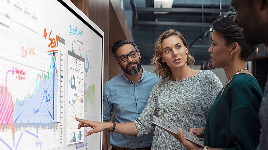 Samsung Flip 2 способны автономно отображать файлы Microsoft Office, имеют встроенный браузер, функцию показа изображений и видеоплеер для контента с разрешением вплоть до 1080p включительно. Весь этот инструментарий можно использовать по мере необходимости и в любой комбинации. Файлы и потоковые данные Samsung Flip 2 умеет брать с локальной USB-флешки, с удаленного хранилища или компьютера по сети или из облака Microsoft Office 365. В штатный арсенал входят не только системы авторизации и шифрования для безопасного обмена данными, но и средства для «зонирования» вовлеченных в процесс людей. Чтобы конфиденциальную информацию одной рабочей группы не увидели представители другой. Например, сотрудники разных отделов одной компании или специалисты с разным уровнем допуска. Как итог, один и тот же Samsung Flip 2 можно использовать для проведения нескольких разноуровневых совещаний подряд, не подчищая информационное пространство после каждой встречи.