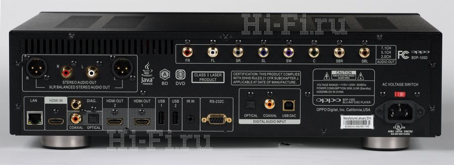 По большому счету, с таким плеером можно вообще отложить апгрейд ресивера в долгий ящик. Даже если имеющийся компонент и не поддерживает новые форматы видео и аудио, это не станет проблемой. У модели есть два выхода HDMI, позволяющие разделить аудио- и видеопотоки, либо применить обработку с повышением до 4K только на одном выходе, а аудиотреки, повторим, декодируются все и в любом виде, вплоть до выставления задержек. Короче говоря, Oppo BDP-105D — это сверхуниверсальный проигрыватель с уникальными возможностями.