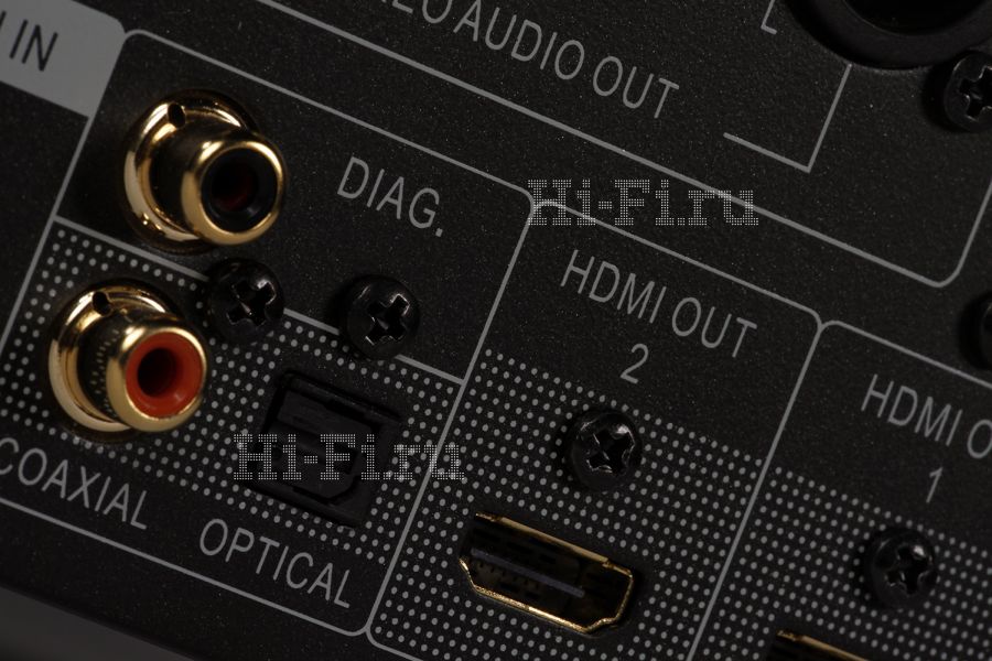 На фото, правда, не увидеть другой особенности этой модели — двух 32-разрядных ЦАПов Sabre32 Reference ESS9018, обеспечивающих, по заявлению производителя, исключительную линейность преобразования в сочетании с высочайшим отношением сигнал/шум: 135 дБ. Обязанности свои эти ЦАПы, правда, делят непривычным образом: один работает на пару стереовыходов, а второй — на все оставшиеся каналы. И, как и в случае с видеочастью, столь мощная схемотехника может быть задействована не только для декодирования аудиопотоков с дисков и файлов, проигрываемых самим плеером, но и для преобразования данных, поступающих от внешних источников. Для этого Oppo BDP-105D оснащен тремя входами: цифровым коаксиальным, оптическим и USB Type B для подключения компьютера.