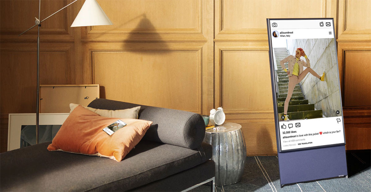 Популярность мобильных гаджетов и соцсетей порождает новые тренды в видеосъемке и фотографии. Все большее распространение получает вертикальный формат кадра, который очень удобен при просмотре на смартфонах и планшетах. Одна незадача – подобные ролики и фотографии нерационально используют экраны мониторов и телевизоров. Решить эту проблему поможет новый интерьерный телевизор Samsung The Sero.