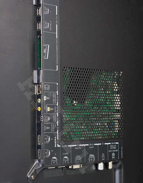 Внутри KDL-46NX710 тоже все неплохо. Дисплей оборудован гибридным ТВ-тюнером, способным принимать программы аналогового и цифрового вещания по стандартам DVB-T и DVB-C с кодировкой в MPEG-2 и H.264, причем как бесплатные, так и кодированные, для доступа к которым есть слот для карт CI+.