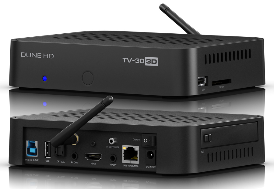 Плюсы: отсек для HDD 2.5”, почти абсолютная файловая всеядность по бытовым форматам, широчайшие функциональные возможности, быстрая передача данных по сети или USB 3.0, стабильный и великолепно продуманный софт, выносной ИК-приемник в комплекте, превосходное качество изображения.