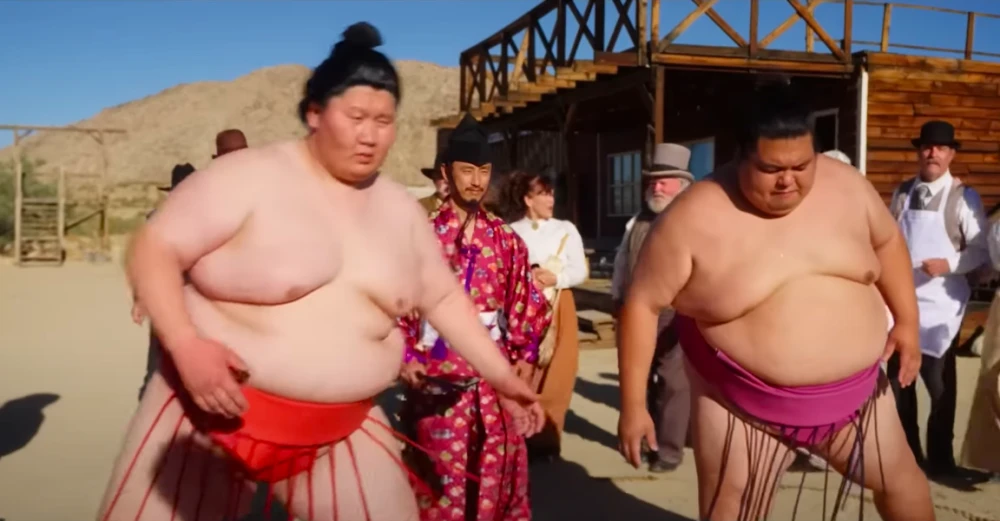 Сюжет вдохновлён реальными событиями. В 1907 году первая делегация японских сумоистов отправилась в турне по США и встретилась с президентом Теодором Рузвельтом. По сценарию фильма, борцы вынуждены задержаться в захолустном городке Калифорнии, где сталкиваются с угрозой со стороны местных бандитов. Главный герой — профессиональный картёжник Макс — объединяется с борцами сумо и хозяйкой магазина, чтобы защитить жителей от преступников.