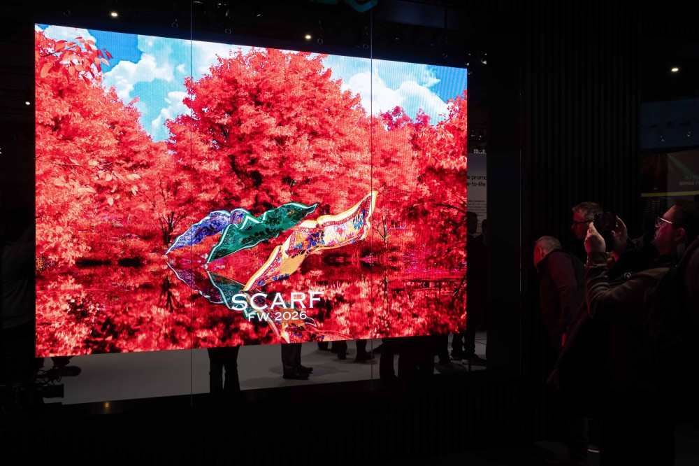Особое внимание аудитории привлёк 142‑дюймовый LED‑дисплей серии IBF для витринных инсталляций. Экран с яркостью 3 500 нит отлично справляется с условиями высокой освещённости, а его тонкий корпус толщиной всего 42 мм позволяет органично вписать устройство в любую витрину. Предусмотрены разные варианты установки — от плоской до вогнутой и оконной.
