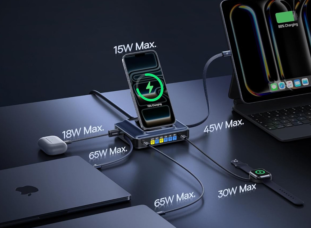 Настольная зарядная станция Baseus Nomos NH21 6-в-1 (245 Вт) продается на европейском рынке по цене 129,99 евро.