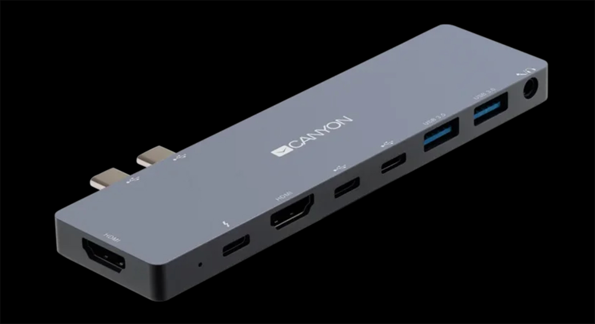 Бренд Canyon представил док-станцию 8-в-1 CNS-TDS08DG. Новинка представлена в чёрно-сером и чёрном цвете. Это многопортовая док-станция, благодаря которой можно одновременно подключить к ноутбуку большинство самых популярных девайсов. Она специально создана для использования с MacBook Pro / Air. Этот хаб превратит MacBook в целую станцию для периферийного оборудования. Он оснащен двумя портами USB Type-C, двумя портами USB 3.0, двумя портам HDMI, разъемом USB Type-C для зарядки PD 3.0 и 1 аудиразъёмом 3.5 мм. Это позволяет подключать к ноутбуку камеры, фотоаппараты, флешки, мониторы и наслаждаться максимально быстрой передачей данных.