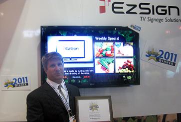 На крупнейшей в мире выставке коммерческих аудиовизуальных устройств InfoComm, которая проходила с 15 по 17 июня в американском городе Орландо, штат Флорида компания LG Electronics получила высшие отраслевые награды за два своих новейших решения. Присуждаемая впервые премия Commercial Integrator BEST Award досталась телевизору LG EzSign TV как лучшему оборудованию для цифровых рекламно-информационных систем 2011 года. Модель способна демонстрировать телевизионные программы одновременно с уникальным контентом фирмы-пользователя без помощи дополнительного оборудования. Создавать контент для такой системы очень легко: владельцы добавляют в готовые шаблоны свои собственные изображения и текст, а затем загружают на дисплей через USB-накопитель. Телевизор