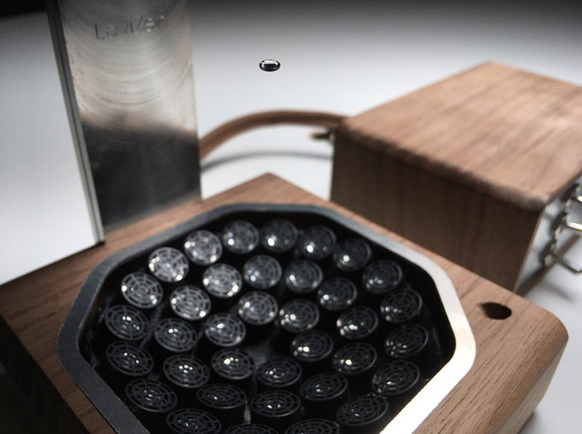 Levizen. Используя принцип акустической левитации (генерируются сверхвысокие частоты, направленные друг на друга - с эффектом создания неподвижной стоячей волны в определенных точках) этот настольный сувенир может заставит парить капли воды. Созерцание подобного процесса, по замыслу авторов, должно умиротворять не хуже, чем наблюдение за каплями дождя за окном.