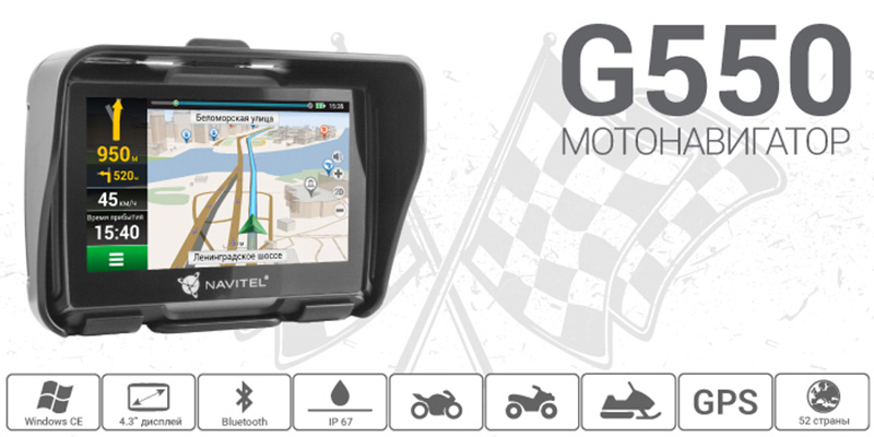 Компания NAVITEL® объявляет о начале продаж в России мотонавигатора NAVITEL G550. Отличительные особенности новинки – сенсорный экран, реагирующий на прикосновения в перчатках, а также расширенный пакет навигационных карт, включающий карты всех европейских государств, Азербайджана, Армении, Беларуси, Грузии, России, Казахстана, Киргизии, Узбекистана и Украины. Мотонавигатор NAVITEL G550 работает под управлением надежной операционной системы Windows CE 6.0. Устройство оснащено 256 МБ оперативной памяти DDR и 4 ГБ встроенной FLASH-памяти, в которой хранятся навигационные карты. Память можно расширить за счет SD-карт. Устройство поддерживает SD-карты объемом до 32 ГБ. Навигационные карты и меню программы выводятся на TFT-дисплей с диагональю 4.3 дюйма. Разрешение сенсорного экрана составляет 480 х 272 пикселей. Устройство комплектуется авто- и мотоаксессуарами. NAVITEL G550 оснащен Bluetooth-модулем, который позволяет пользоваться навигатором в режиме Hands-Free.