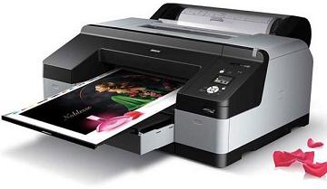 незаменимым печатным инструментом в процессе создания профессиональной цветопробы. Компактный прибор с одиннадцатью цветными чернилами Epson UltraChrome HDR отличается филигранным позиционированием чернильных капель благодаря печатающей головке Advanced-TFP. Он автоматически переключается между черными чернилами для матовой и глянцевой бумаги, при этом оба типа черных чернил устанавливаются в принтере одновременно для исключения остановки печати тиража. Картриджи повышенной емкости помогают снижать затраты на печать. Скорость печати составляет 30 кв.м./час при минимальных требованиях к техобслуживанию. Фронтальный лоток большой емкости упрощает загрузку бумаги, а автоматическая смена носителя позволяет не тратить время при переключении между подачей листовой и рулонной бумаги.