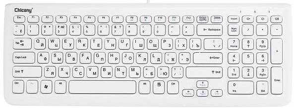 Chicony KU-0903. Миниатюрность последней достигнута за счет отказа от цифрового блока — раскладка здесь идентична стандартной раскладке ноутбуков.