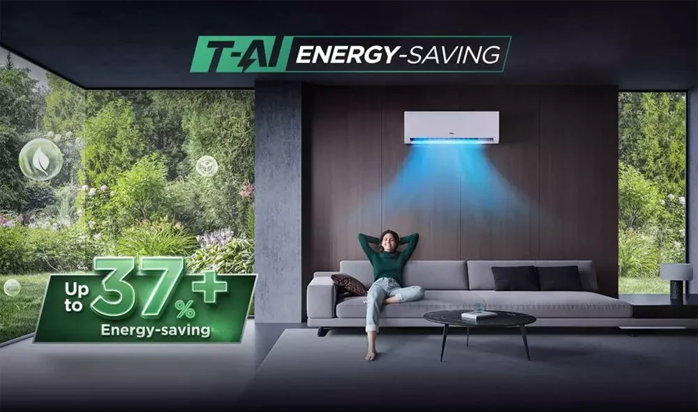Компания TCL разработала интеллектуальную систему энергосбережения, которая осуществляет быстрый подбор оптимальных настроек при помощи встроенных ИИ-чипов. Энергосберегающая технология T-AI построена на принципе «интеллектуальное распознавание + точное управление». Высокоточные датчики постоянно отслеживают изменения температуры и влажности в помещении. На основе этих данных искусственный интеллект создаёт динамические профили и в реальном времени определяет, как лучше управлять работой устройства. ИИ-чип прогнозирует потребности пользователя и автоматически регулирует работу компрессора, позволяя избегать лишних затрат энергии.