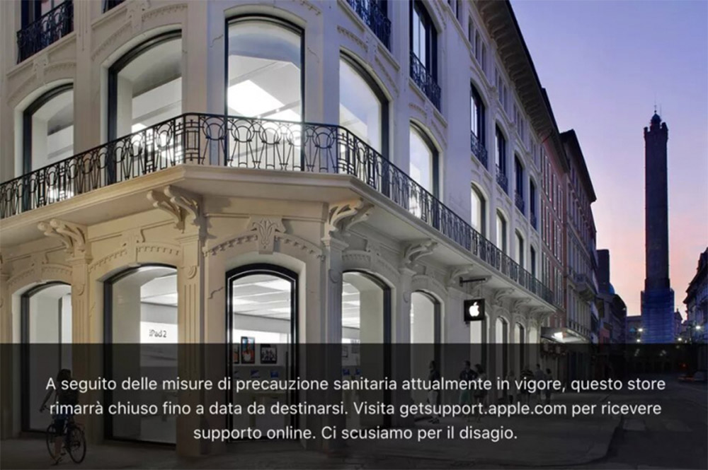 Из-за обостряющейся эпидемии коронавируса в Италии компания Apple приняла решение о закрытии всех своих 17 розничных магазинов в этой стране на неопределённый срок. Во многом это решение утвердило уже сложившуюся ситуацию после введения ограничительных мер во всех регионах Италии. В соответствии с указом премьер-министра Италии Джузеппе Конте, до 3 апреля будут закрыты на въезд и выезд автономная область Ломбардия и ещё 14 провинций.