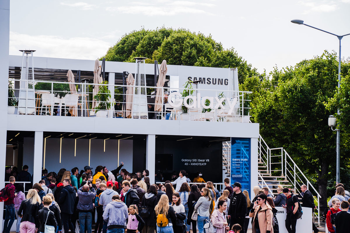 В 2019 году Samsung Electronics отмечает 50-летие, а также 10-летие линейки Galaxy. На протяжении всех этих лет компания Samsung остается трендсеттером в мире технологий и создает инновационные продукты, лучшие из которых ежегодно представляются в Galaxy Studio. В этом году летнее интерактивное пространство студии было посвящено теме будущего, технологическим трендам, культурным и развлекательным тенденциям современности. Изюминкой открытия стала уникальная арт-инсталляция работы московской художницы Саши Фроловой, которая была разработана специально для Galaxy Studio. Гости вечера получили возможность увидеть актуальные новинки Samsung 2019 года: флагманские смартфоны линейки Galaxy S10, а также продукты экосистемы Samsung – носимые устройства Galaxy Watch и Galaxy Fit/Fit e, Galaxy Buds, планшеты Galaxy Tab S, QLED-телевизоры и другие передовые технологические решения.