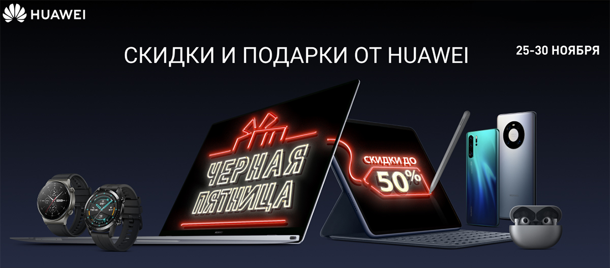 Компания HUAWEI объявила о начале скидок и специальных предложений в официальном интернет-магазине. С 25 по 30 ноября в рамках акции «Черная пятница» покупатели смогут приобрести смартфоны, носимые устройства, планшеты и аксессуары HUAWEI со скидками до 50%.