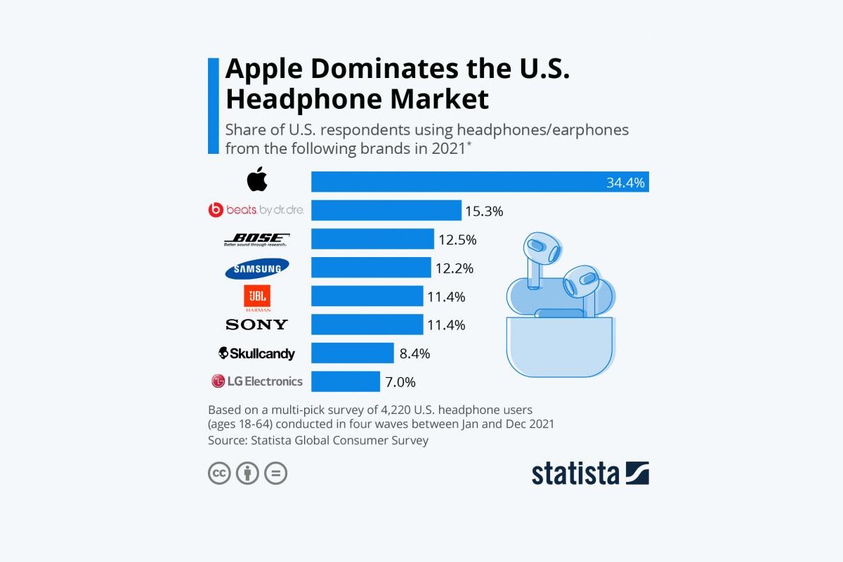 Аналитическая компания Statista провела опрос среди 4 000 американцев. Респондентам задавали один единственный вопрос: «Какими наушниками они пользуются?».