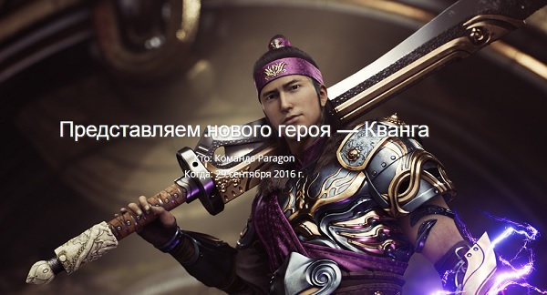 С сегодняшнего дня всем игрокам Paragon доступен новый герой – впервые представленный на выставке «ИгроМир» искусный мечник по имени Кванг. Отныне повести воина в битву и лично оценить его умения и боевой потенциал может каждый желающий. Кванг – непревзойденный мастер меча, чей легендарный клинок вселяет страх в сердца врагов. При использовании способности «Свет небес» (Light of the Heavens) меч Кванга испускает сияние, наносящее урон всем вокруг, а ему самому дарующее физическую и энергетическую защиту. «Приговор небес» (Judgement of the Heavens) заставляет меч взмыть в поднебесье и рухнуть вниз, нанося урон и связывая врагов. Меч остается недвижим, пока могучий Кванг не призовет его или не использует базовую атаку. Пассивная способность «Дар небес» (Gift of the Heavens) напитывает клинок светом, и тогда каждый удар восстанавливает жизненные силы персонажа и его ближайших товарищей. Наконец, абсолютная способность «Ярость небес» (Fury of the Heavens) наносит сокрушительный урон всем противникам вокруг Кванга и замедляет их. Если в момент применения клинок не находится в руках героя, он телепортируется к нему. Подробности об игре: