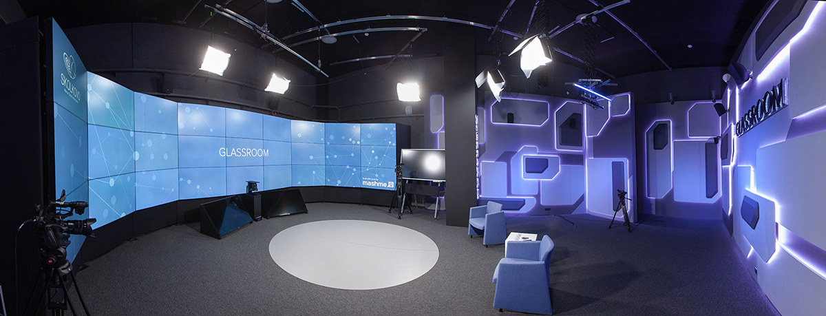 Монтаж виртуальной аудитории проходил в начале этого года. Для создания виртуального класса Glassroom потребовалось 27 широкоформатных панелей Samsung диагональю 55 дюймов, объединенных в единый полукруглый дисплей со стыками менее 2 мм. На экране может демонстрироваться до 80 изображений участников встречи (конференции, лекции, семинара), лекционные материалы (графики, видео, фото, другая полезная информация от преподавателей), проектов и выполненных заданий студентов во время виртуальной сессии.