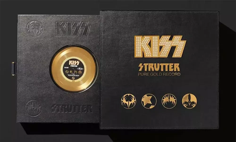 Группа KISS объявила о выпуске супер ограниченного издания своего хита Strutter с дебютного альбома 1974 года на 5-дюймовой пластинке из 24-каратного золота, которая будет выпущена в количестве всего пять экземпляров – по одному на каждое десятилетие с момента выхода сингла. Пластинку можно купить всего за 50 тысяч долларов США.