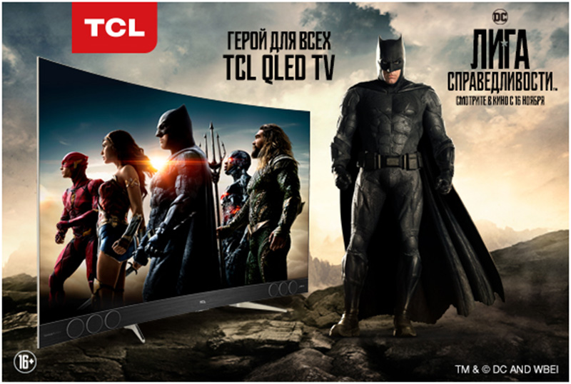 Компания TCL объявила о заключении официального международного партнерства с кинокомпанией Warner Bros. Pictures в рамках продвижения фильма «Лига справедливости» (Justice League), давно ожидаемого приключенческого экшена, который впервые за все время существования франшизы выводит команду культовых супергероев на большой экран (в кино с 16 ноября). Стороны объединили усилия в области продвижения фильма среди своих фанатов и клиентов по всему миру, в том числе и России. В рамках международного кросс-платформенного сотрудничества TCL запускает серию уникальных совместных проектов по продвижению фильма, где центральным событием станет показ тридцати- и пятнадцатисекундных рекламных ТВ-роликов на плоских экранах TCL во многих магазинах электроники для поддержания зрительского интереса, мероприятия по стимулированию продаж телевизоров TCL, бесплатные раздачи промоматериалов с рекламой бренда.