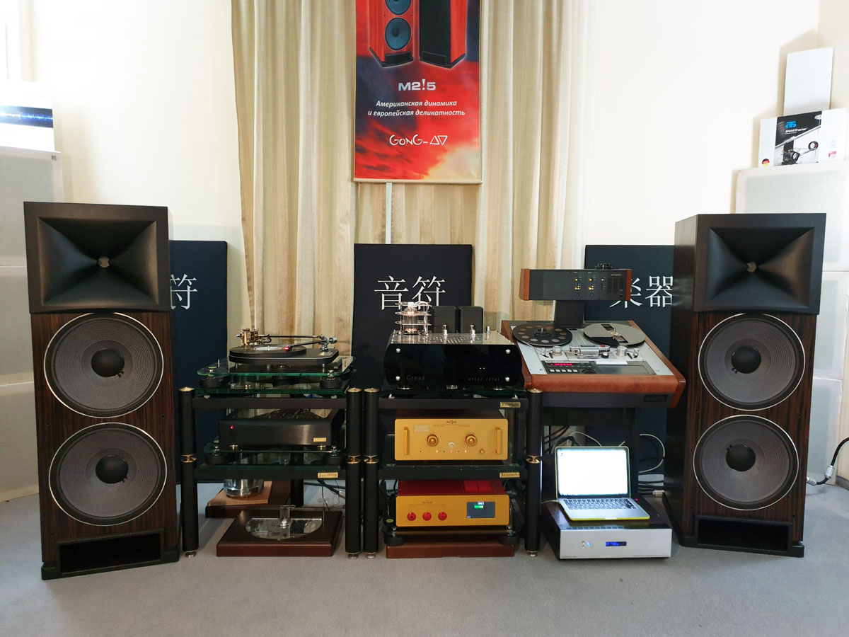 Эти акустические системы уже экспонировались на прошлогоднем «Джеме», однако они нисколько не утратили свою актуальность и, если так можно выразиться, «ретро-революционность». Эти АС с рупорной СЧ/ВЧ-секцией выполнены в стиле винтажных моделей JBL и даже на основе тех же излучателей, которые автор конструкции Питер Норбек (глава калифорнийской компании PBN Audio) скупает по всему свету и при необходимости реставрирует. Интересная особенность: кроссоверы АС видны с тыльной части колонок через прозрачный экран, и один их вид уже свидетельствует о серьезности подхода автора конструкции. Еще одна особенность – поляризация конденсаторов ВЧ-фильтра с помощью батареек 9В, емкости которых в виду отсутствия тока потребления хватает на многие годы.
