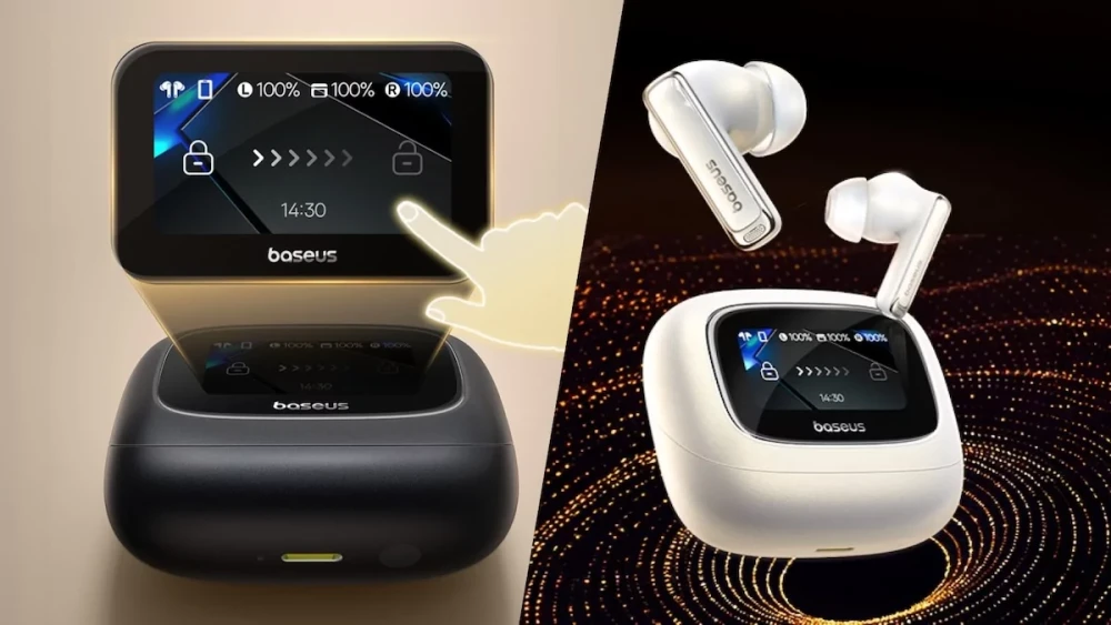 На зарядном чехле имеется сенсорный дисплей, с помощью которого можно управлять наушниками, например, регулировать громкость или переключать треки.