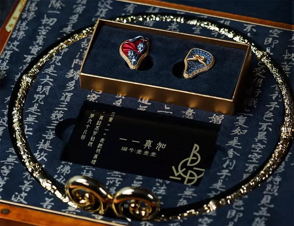 Внутриканальные наушники BGVP WuKong получили по-настоящему роскошное оформление. Корпуса выполнены из чистого серебра с покрытием 24-каратным золотом. Помимо впечатляющего внешнего вида, использование серебра имеет и акустический смысл – материал эффективно подавляет нежелательные резонансы, обеспечивая максимальную чистоту звучания. Каждый корпус превращён в «полотно» для вручную гравированных художественных мотивов, вдохновлённых легендой о WuKong. На одной стороне изображён Царь обезьян в боевом облике – с красным плащом и перьями фазана. На другой – мантра Золотого Обруча и священные тексты. Каждая деталь точно инкрустирована мастером, формируя культовый дизайн модели.