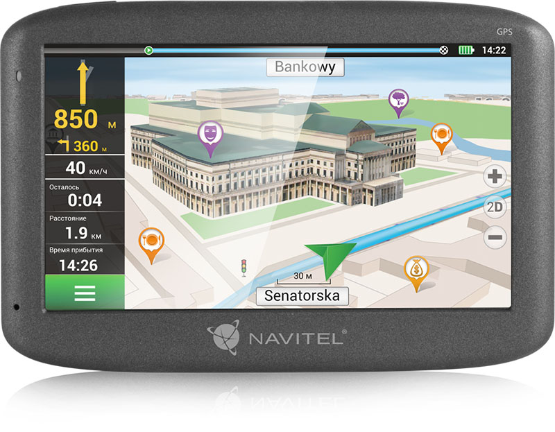 На навигаторе NAVITEL E500 предустановлена самая свежая версия ПО "Навител Навигатор" с картами 47 стран. Объем встроенной памяти, равный 8 ГБ, позволяет хранить на компактном устройстве подробные карты России, Беларуси, Казахстана, Украины и всех стран Европы. Карты NAVITEL® отличаются высоким уровнем детализации. Они включают дорожную сеть с актуальными данными о транспортных развязках, направлении движения, опасных участках и ограничениях скорости. На картах, установленных в NAVITEL E500, содержится более 890 000 городов и населенных пунктов и более 6 миллионов объектов инфраструктуры (POI).