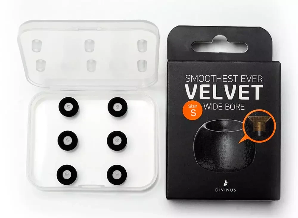 Сейчас бренд DIVINUS объявил о расширении линейки вкладышей DIVINUS Velvet, представив набор DIVINUS Velvet Wide Bore. Они имеют ту же структуру, что и вкладыши Divinus Velvet, но ориентированы на использование с наушниками с соплами большего диаметра. Как следует из названия, канал ушных вкладышей DIVINUS Velvet Wide Bore более широкий, а конструкция была оптимизирована таким образом, чтобы максимизировать низкочастотный и высокочастотный отклик. Канал расширяется у выхода, что усиливает низкочастотный и высокочастотный отклик, подобно тому, как это происходит в рупорной акустике. Вкладыши DIVINUS Velvet Wide Bore имеют усиленную нижнюю часть, что позволяет надёжно их фиксировать на соплах наушников.