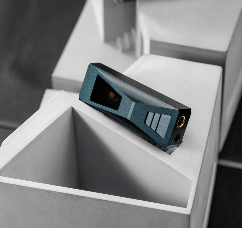 В нем есть 3,5 мм и 4,4 мм гнезда для подключения наушников, выходная мощность составляет 200 мВт. Блок ЦАП построен на чипе ES 9038Q2M, способном работать с потоком РСМ 32/768 и DSD 512. В модели также есть встроенный тактовый генератор для асинхронной передачи данных. Усилительный каскад реализован на двух ОУ RT6863. Светодиодный индикатор в устройстве загорается разным цветом в зависимости от частоты дискретизации поступающего сигнала. Весит модель всего 17 граммов.
